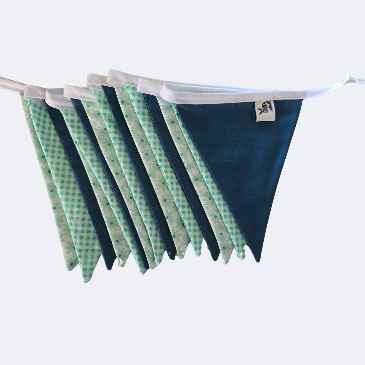 - Blue / Green Toning's solid blue, green and white check, green and blue flower flags
