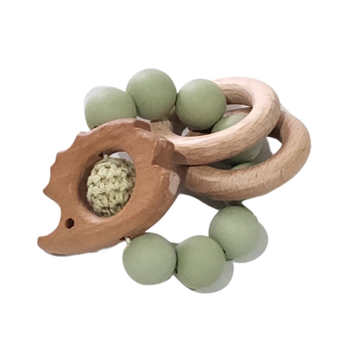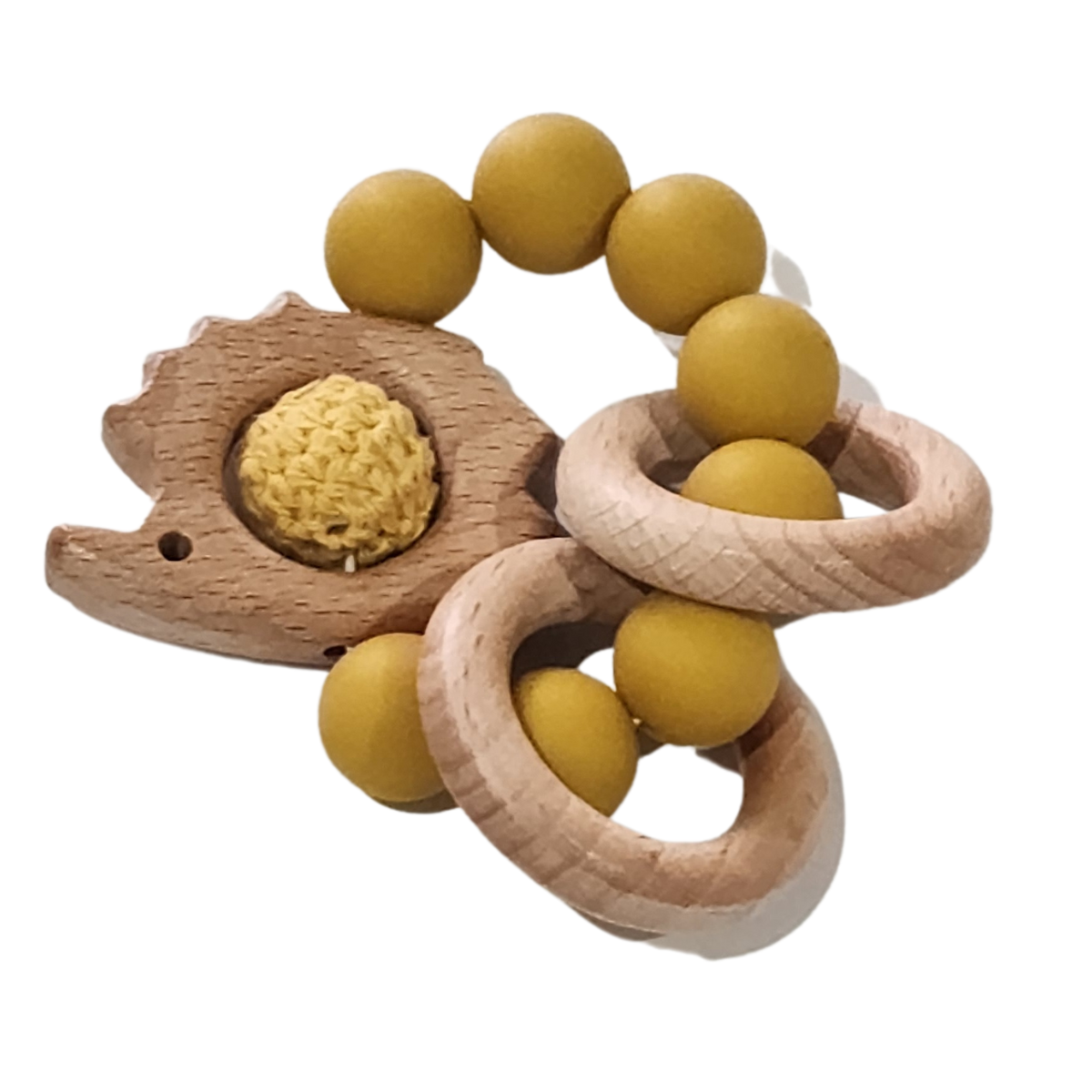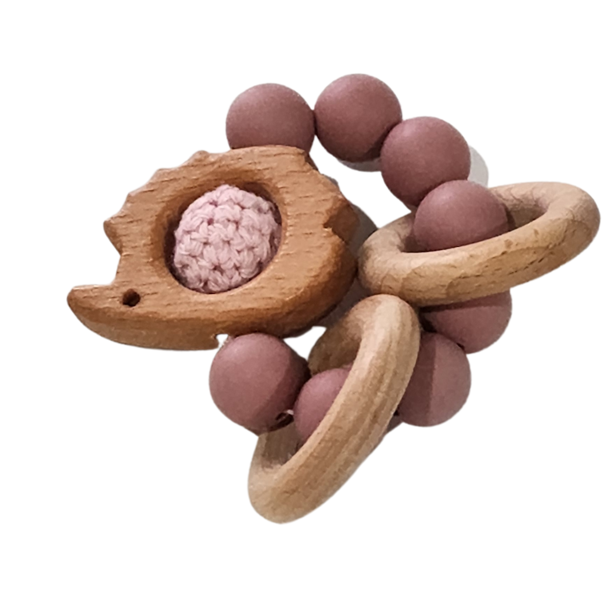 Silicone and Beech Teether Ring With Crochet