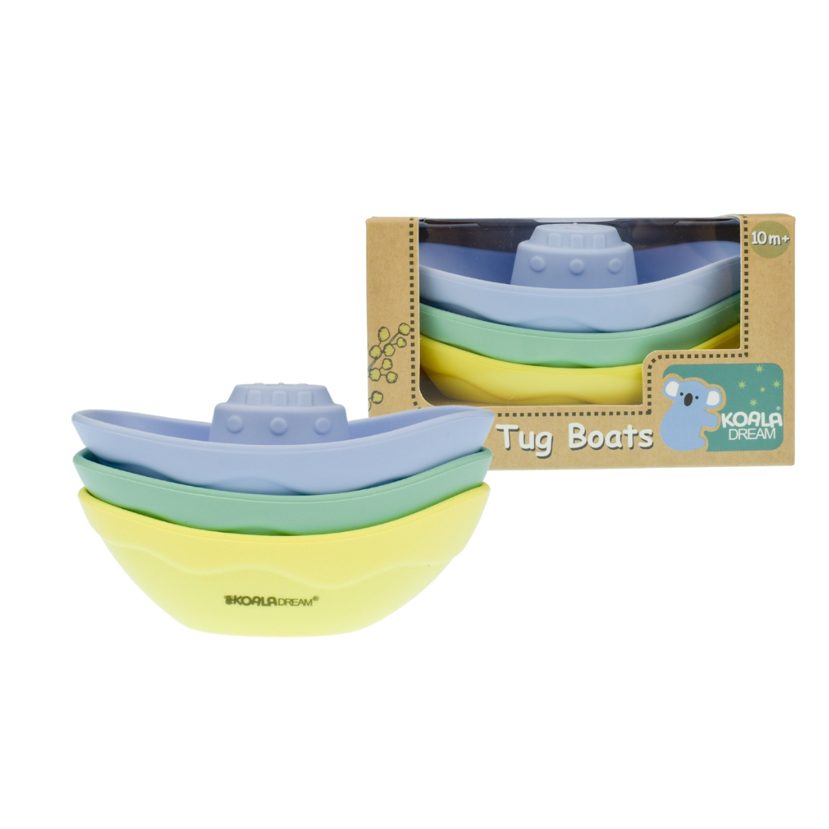 Set sail on splashy adventures with the Koala Dream 3 Piece Silicone Bath Tug Boats!