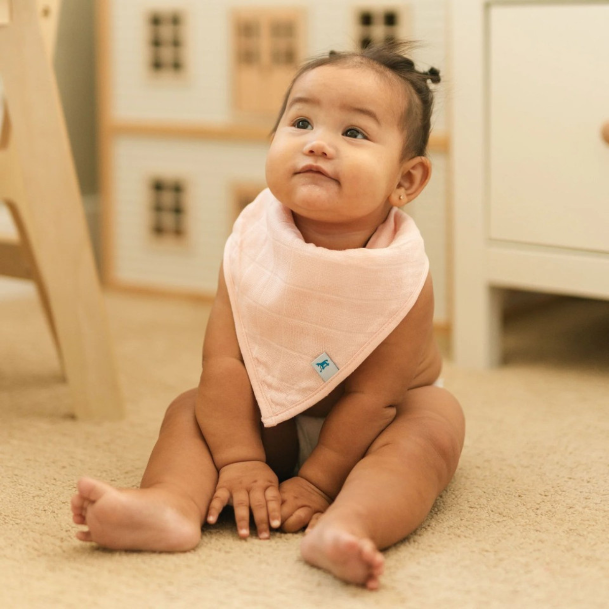 Little Unicorn’s cuddly muslin fleece bandana bibs now come with extra adjustable snaps to grow along with your baby, a snug contoured shape for added comfort, and the best part—they keep your little one dryer for longer!