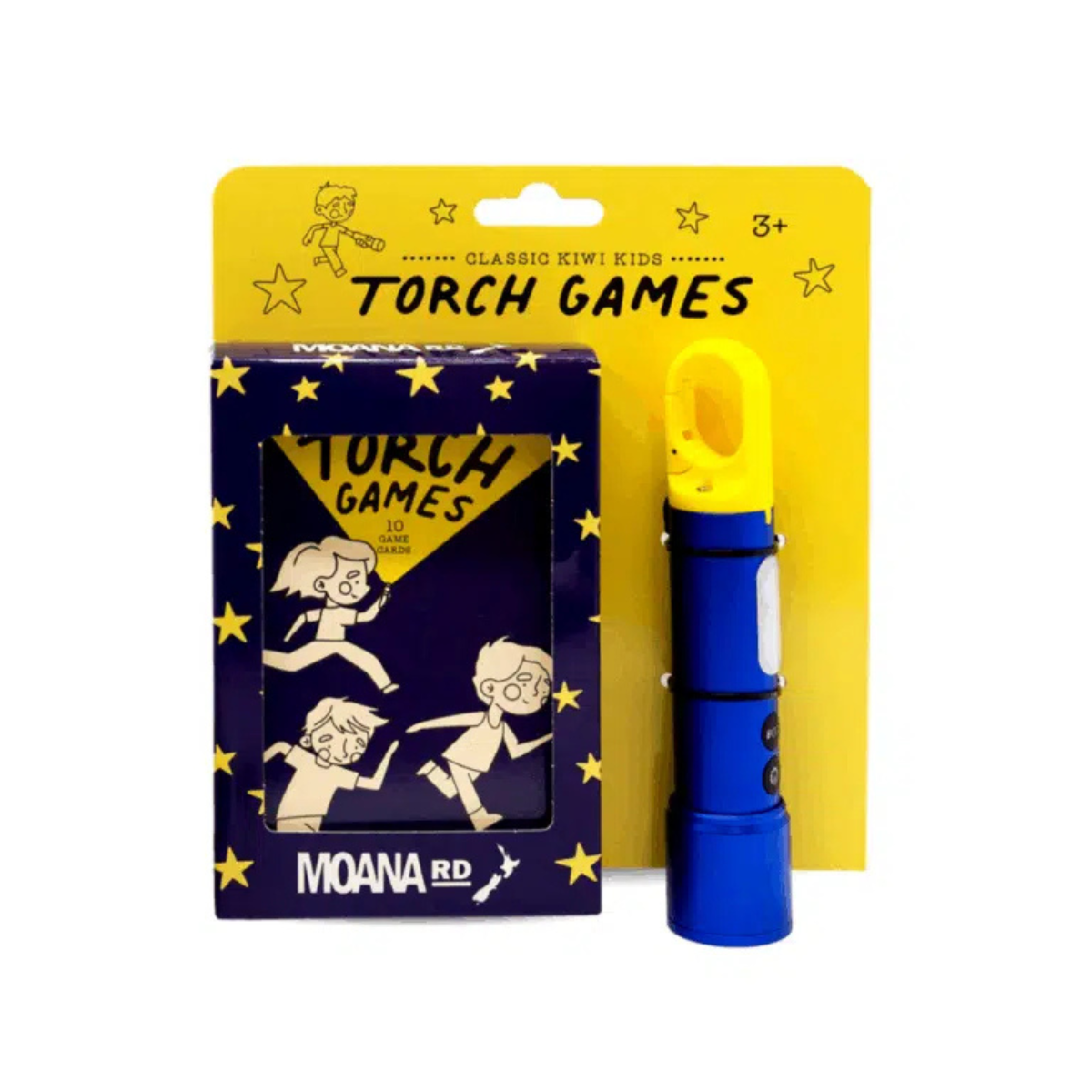 Say goodbye to screens and hello to classic Kiwi childhood magic with a sturdy metal torch and a set of ten game cards.