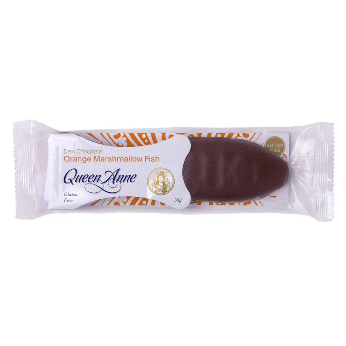 Orange Marshmallow (65%) [glucose (maize), sugar, water, invert syrup, gelatine (beef), natural orange flavour (0.1%), natural colour (160b)], Dark Chocolate (35%) [sugar, cocoa mass, cocoa butter, emulsifiers (322-soy, 476), natural vanilla]