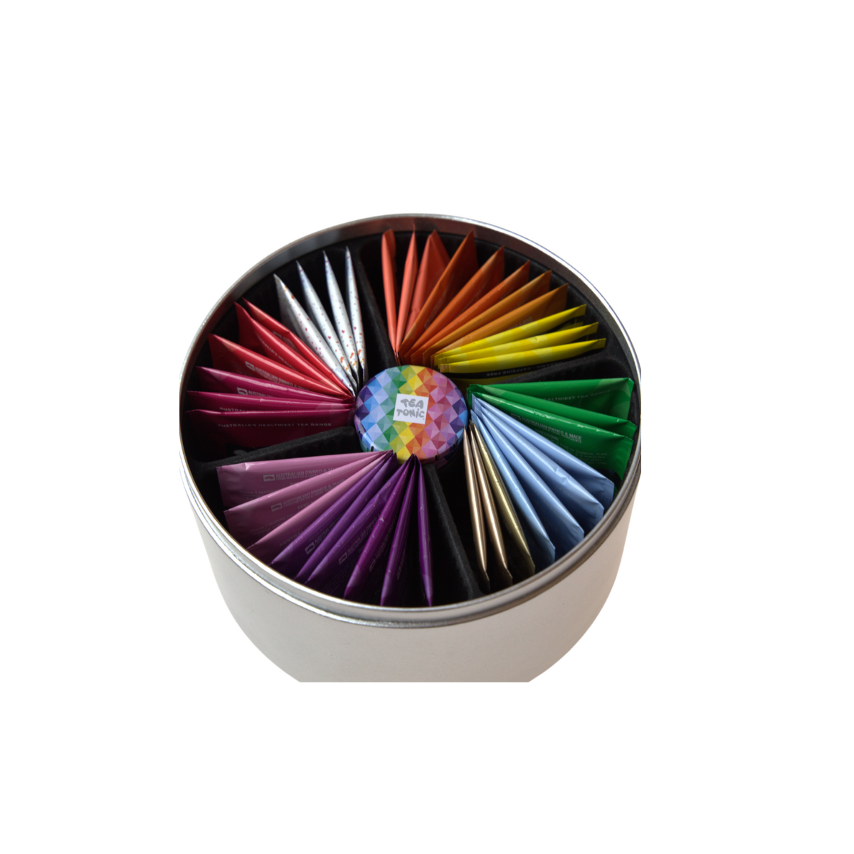 • Apple Tree Tea • Australiana Tea • Blue Magic Tea • Chamomile Tea • Complexion Tea • Control Cramp Tea • Peppermint Tea • Relaxation Tea • Throat Soother Tea • True Calm Tea • Turmeric, Beetroot & Ginger Tea • Well Being Tea • BONUS Mini Sparkling Rose Buds Tin